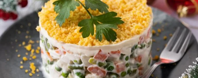 Zdjęcie: z otwartych źródeł Będzie łatwy do pokrojenia i podania na świątecznym stole Klasyczną noworoczną sałatkę olivier w tym roku można przygotować